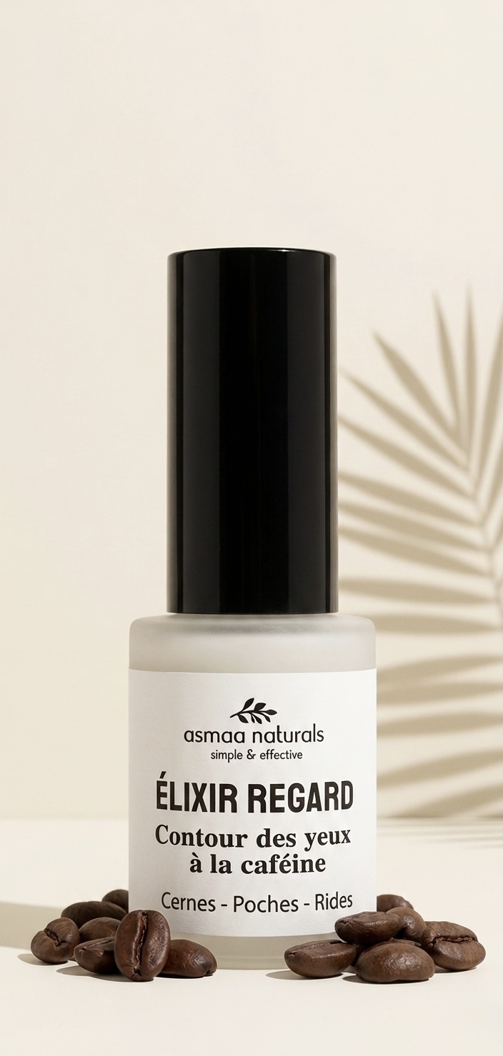 - la caféine : Naturellement présente dans le grain de café et les feuilles de thé : la caféine est connue pour faciliter la circulation sanguine et réduire la rétention d’eau, elle permet ainsi de réduire l’apparence des poches et cernes sous les yeux