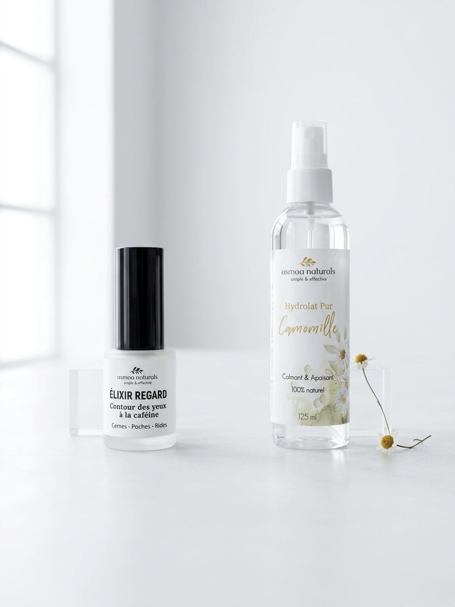 1. Appliquez l’hydrolat de camomille pour réveiller et apaiser le regard